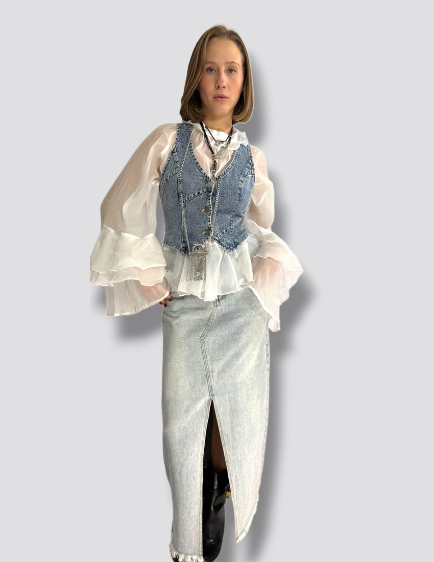 Blusa de gasa boho, color blanco, volantes en manga cantidad