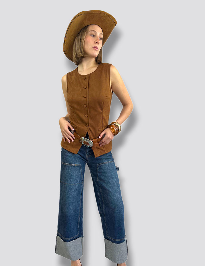 Chaleco largo en suede color marron