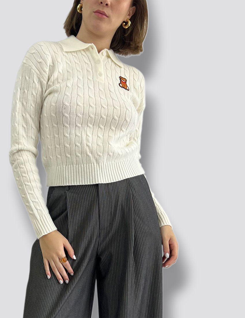 Jersey cuello tipo polo punto de cable aplicacion de teddy