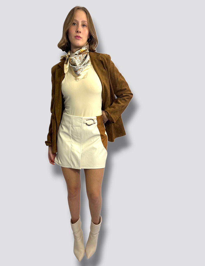 Minifalda vinipiel color hueso y diseño herraje dorado