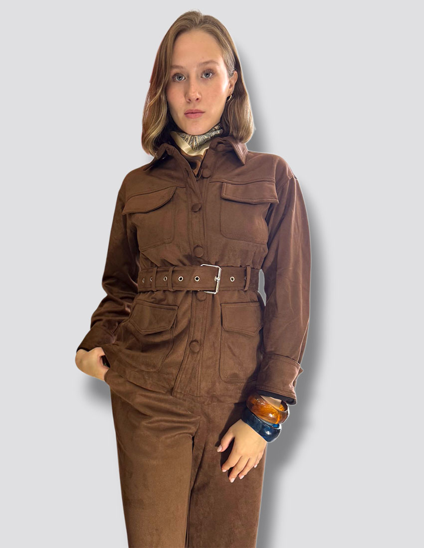 Set pantalón y blazer cargo suede color espresso