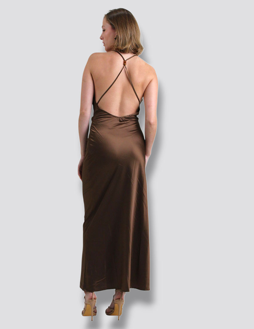 Vestido color tabaco satin