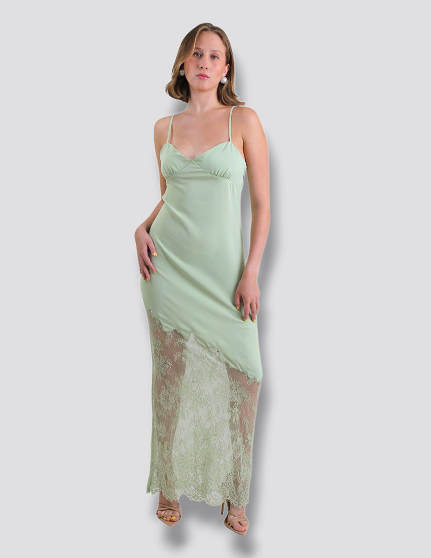 Vestido satin verde pistache encaje